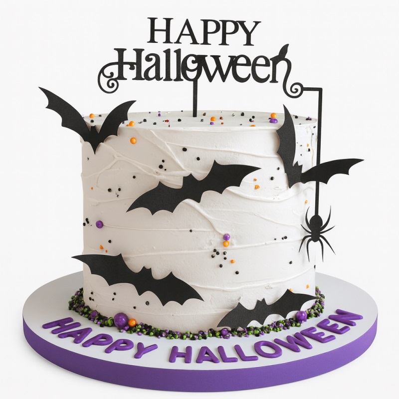 Creep it real this Halloween with our Spider & Bat Cake! Decorated with flying bats, spooky spiders, and a bold “Happy Halloween” topper, this white frosted cake is a party-perfect centerpiece. Freshly baked and delivered across the UK by Caker Street.
