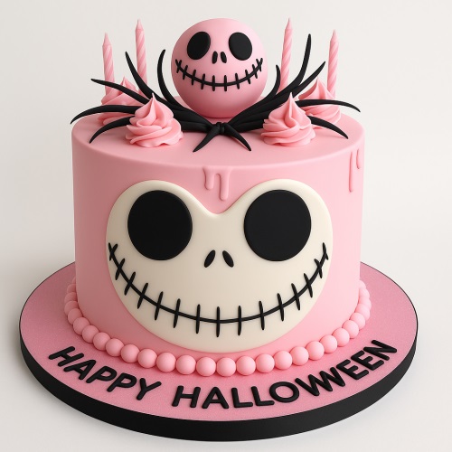 Add a spooky–cute twist to your our Pink Skull Halloween Cake! Decorated in pastel pink fondant, bold black skull face, and topped with a creepy-cute skull and candles, this cake is the perfect mix of sweet and spooky. Handcrafted for parties, kids, or themed events, freshly baked and delivered across the UK by Caker Street.