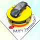 A sleek Porsche Car Cake for Boys featuring an edible car topper crafted from fondant, meticulously hand-decorated with realistic details. The cake is covered in smooth fondant, accented with clean lines, vibrant colors, and carefully piped finishing touches to evoke the luxury and elegance of a Porsche.