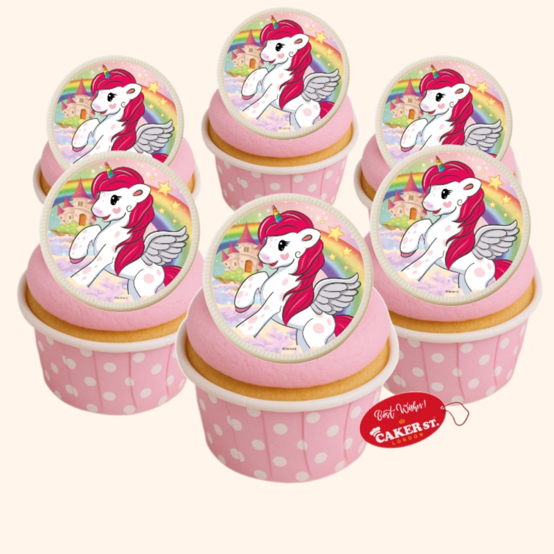 Step into a land of rainbows and castles with our whimsical Unicorn Themed Cupcakes! Featuring a playful winged unicorn on edible toppers, these cupcakes are perfect for dreamy birthdays, fantasy lovers, and magical celebrations.